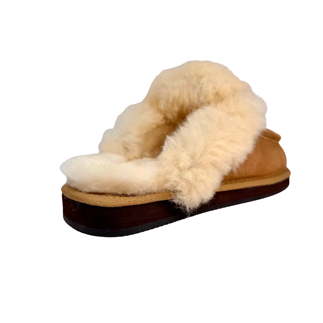 Conçues en véritable peau de mouton, elles offrent une chaleur naturelle incomparable et un confort extraordinaire. Leur forme mule, ouverte à l’arrière, permet un enfilage instantané, tandis que l’avant rappelle le raffinement d’un mocassin doux et structuré.