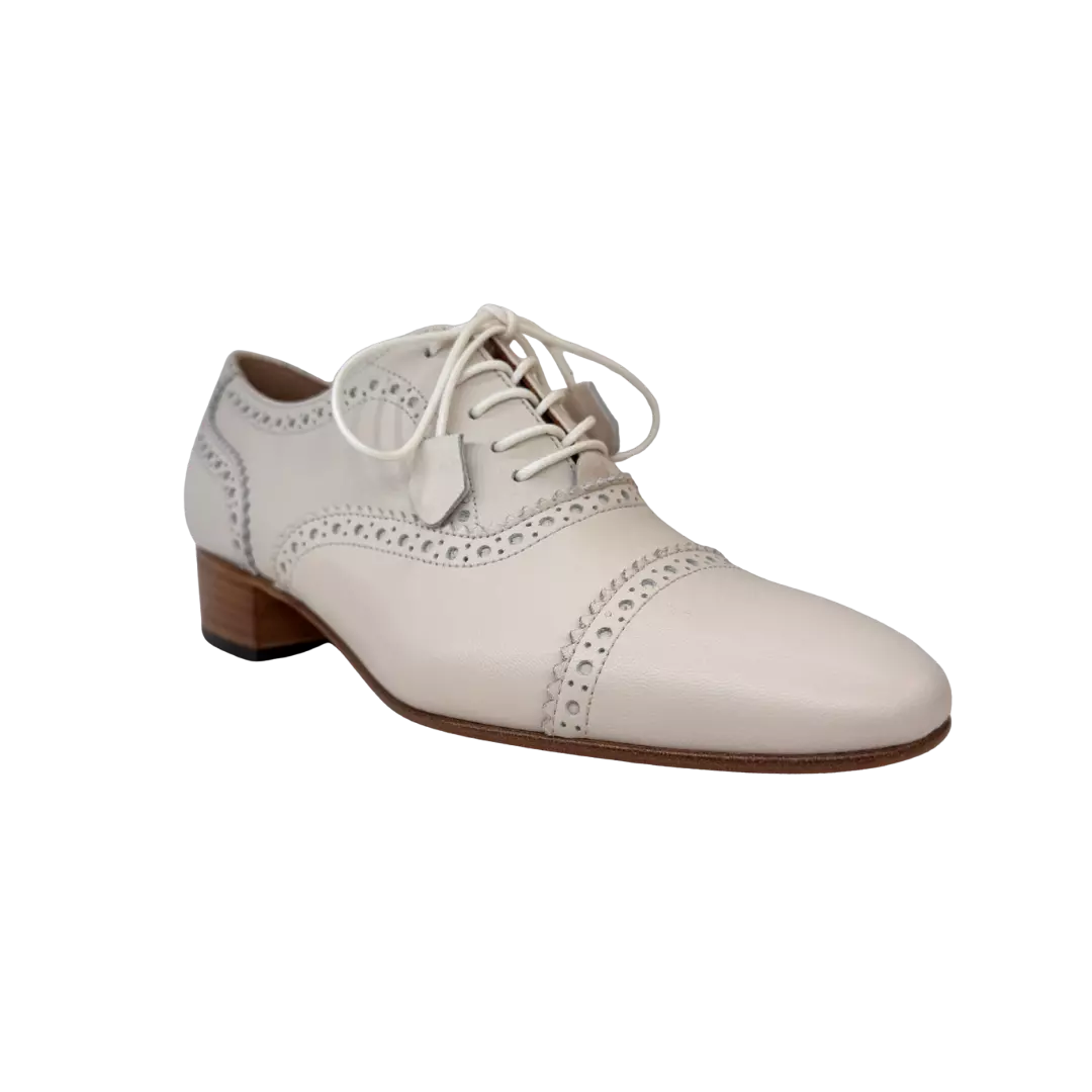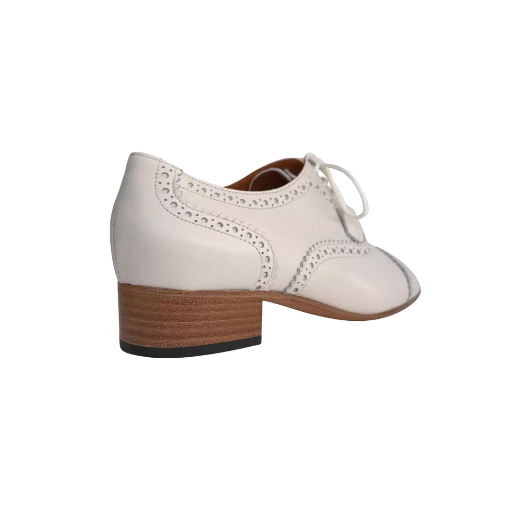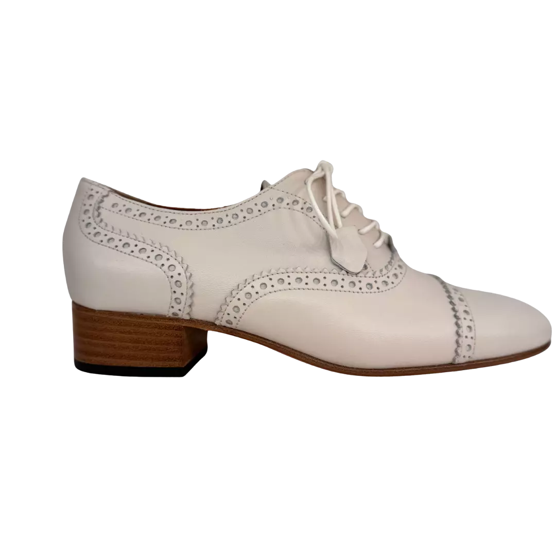 Adoptez une allure élégante et affirmée avec ces derbys femme MARETTO en cuir blanc cassé. Inspirés du style Oxford, ils se distinguent par leurs perforations raffinées qui apportent du caractère tout en conservant une grande finesse.