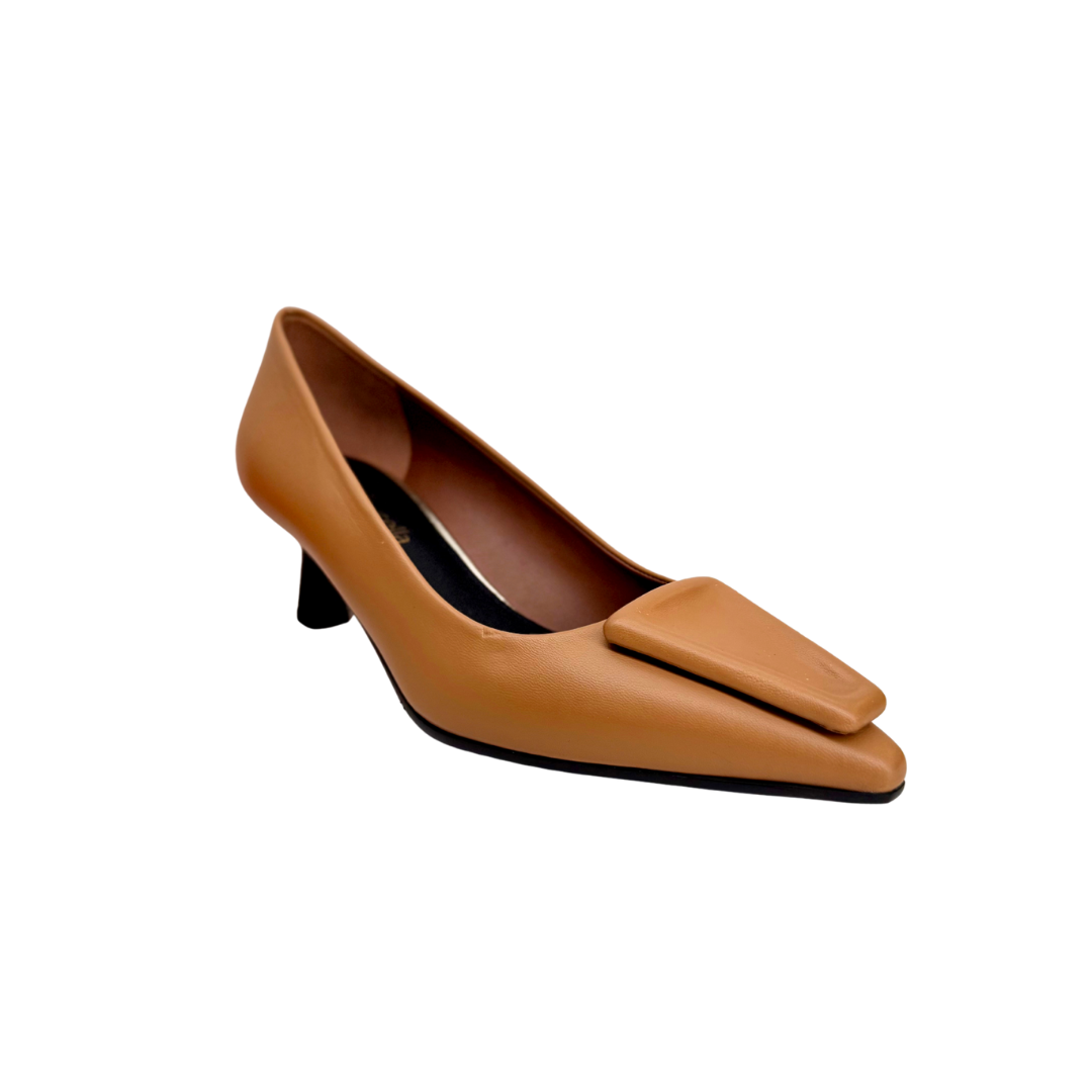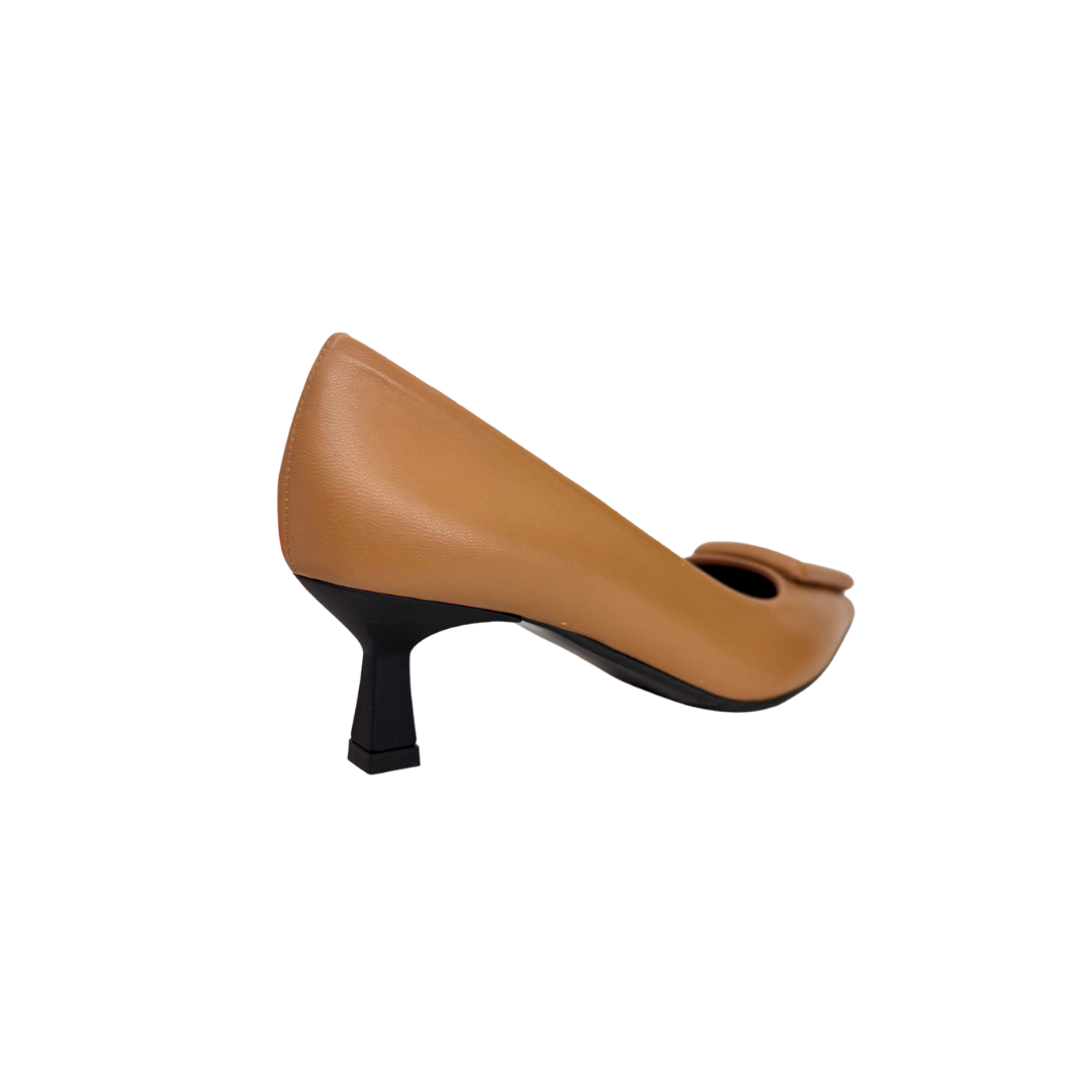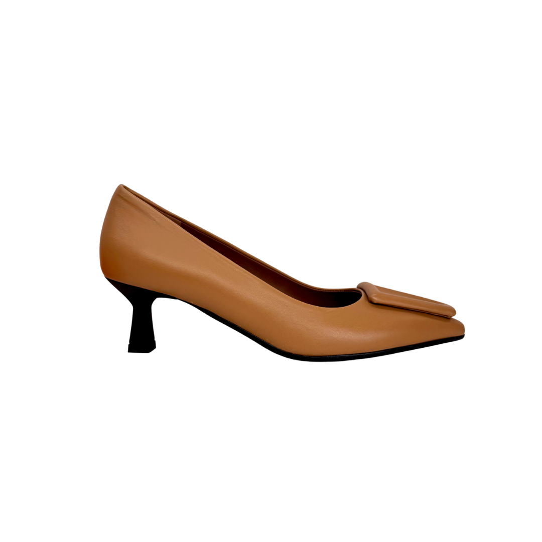 Allure élégante et féminine pour ces escarpins MUSELLA en cuir camel, sublimés par un bijou délicatement façonné en cuir. Leur ligne épurée et leur teinte douce et lumineuse soulignent un style à la fois sophistiqué et naturel.