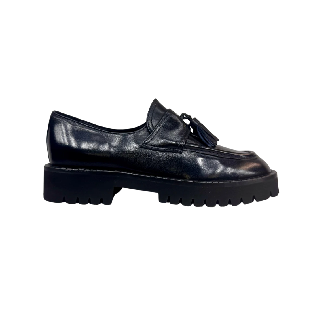Le bleu nuit profond est facile à associer et apporte une touche contemporaine et chic à toutes vos tenues, qu’il s’agisse d’un jean, d’un pantalon tailleur ou d’une jupe midi. Le design intemporel et la qualité des matériaux font de ces mocassins un allié durable pour le quotidien, combinant savoir-faire italien et modernité.
