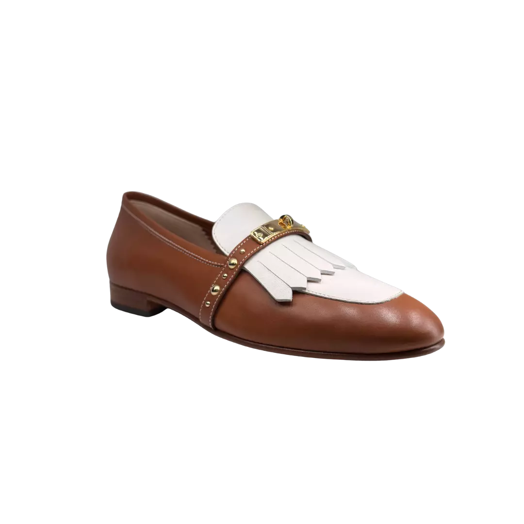 Affirmez votre style avec ces mocassins femme MARETTO en cuir bicolore tabac et crème, véritables reflets de l’élégance italienne. Leur design subtil joue sur les contrastes pour offrir une allure à la fois chic et singulière, sublimée par un mors métallique délicat qui capte le regard sans en faire trop.