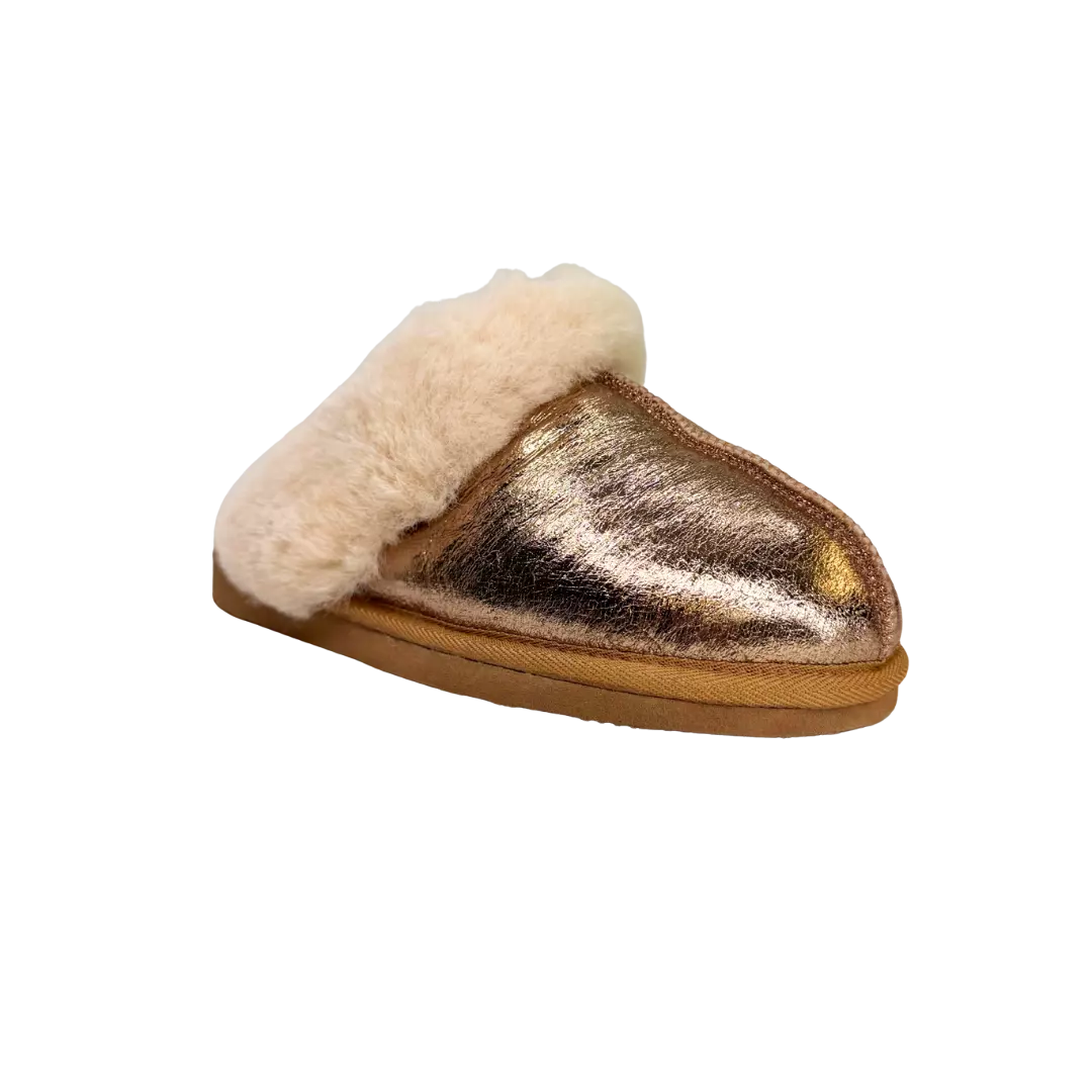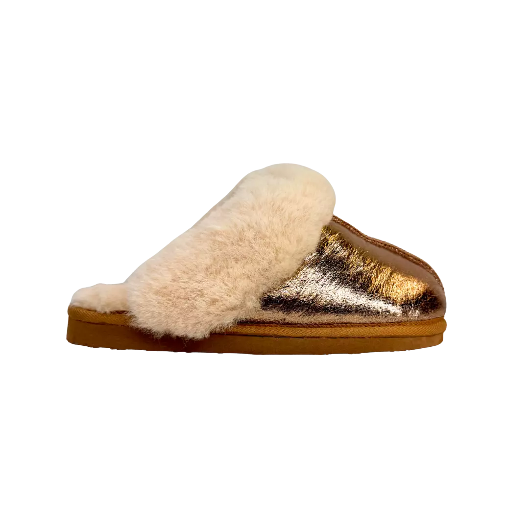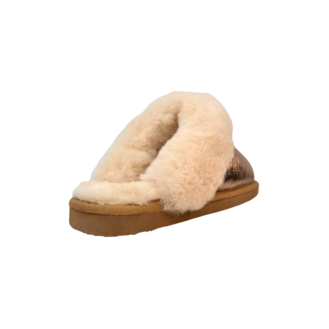 Oui ! Malgré leur look fun et entièrement doré, elles restent fabriquées en véritable peau de mouton, offrant un confort exceptionnel, chaud, doux et respirant.