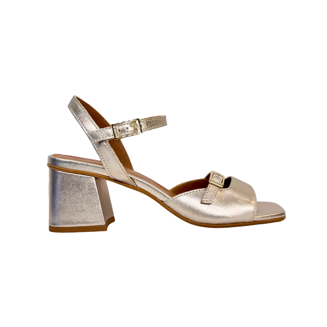 Sublimez vos tenues avec cette sandale à talon carré 5 cm en cuir doré JB MARTIN. Son talon stable et confortable permet de marcher facilement tout en apportant une touche élégante à votre silhouette.
