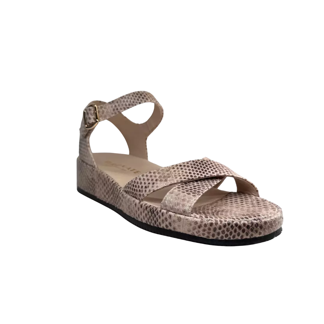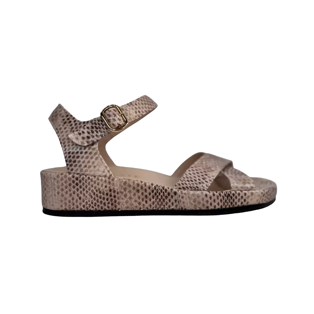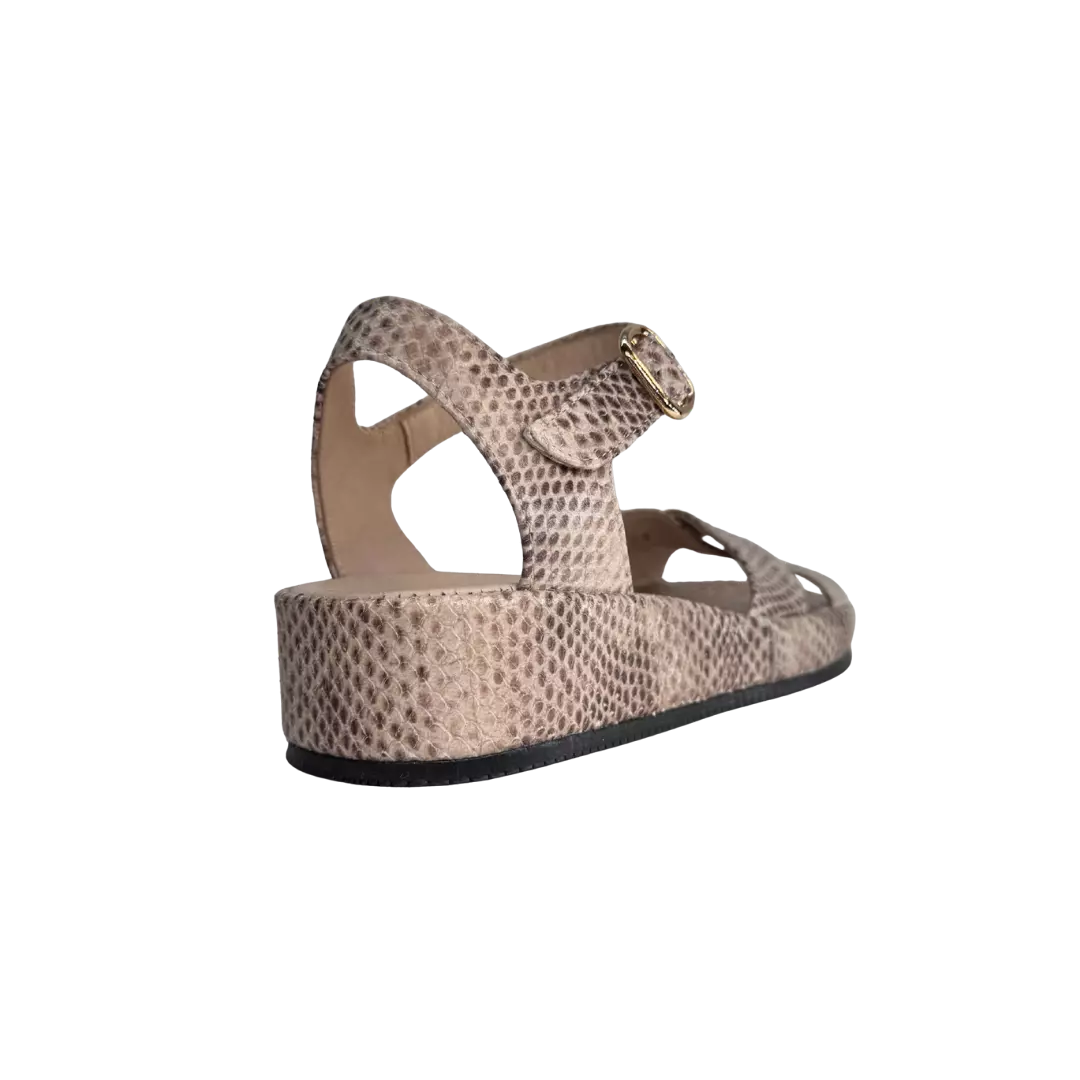 Optez pour une élégance subtile avec cette sandale compensée en cuir effet python signée BRUNATE. Son imprimé délicat apporte du caractère tout en restant facile à associer au quotidien.