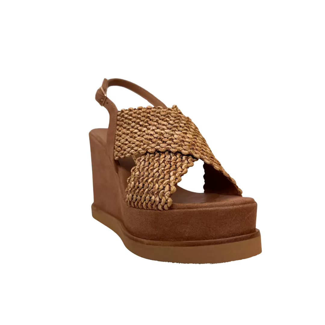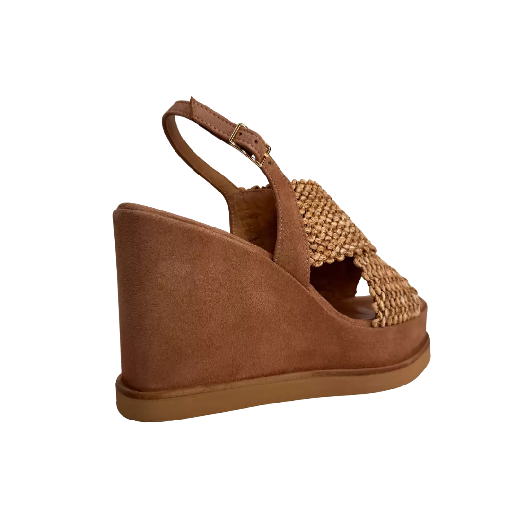 Sandales GIANMARCO SORELLI | compensées nubuck moka raphia